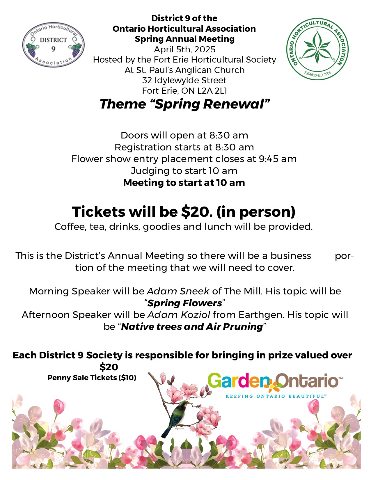 In 2026, our Spring AGM will be hosted by the Port Colborne Garden Club and the Ridgeway and District Horticultural Society.